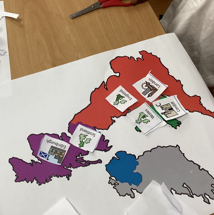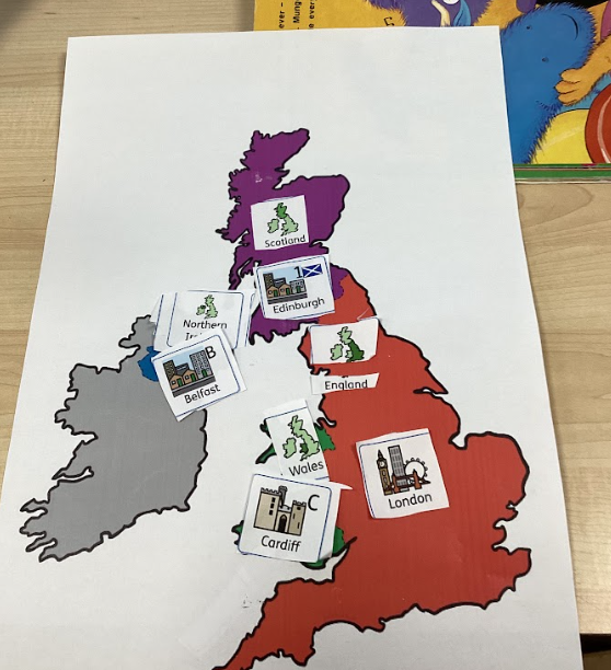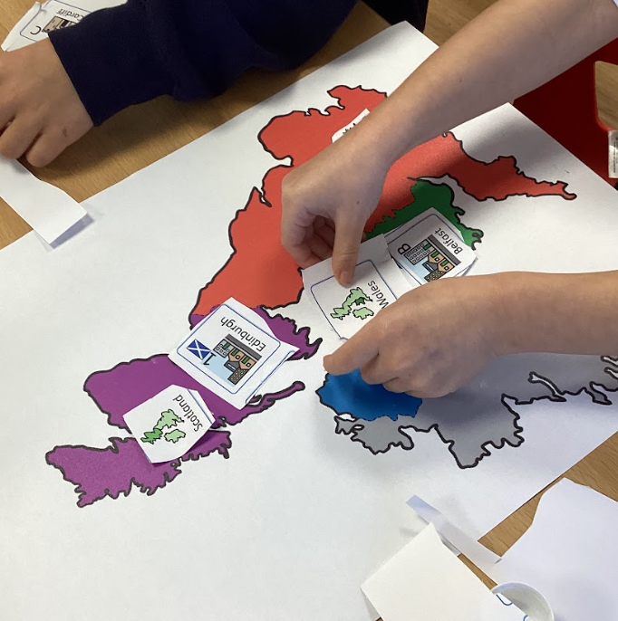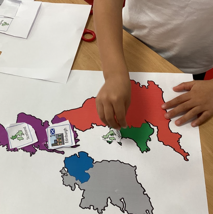 Our geography lesson this week focused on the United Kingdom. We learnt which four countries make up the UK. Once we were confident with this, we looked at the names of each country's capital cities and discussed why each was a capital city. At the end of the lesson, we were challenged with labelling a large map of the UK with each country and its capital city.