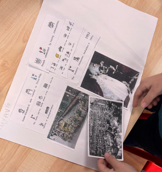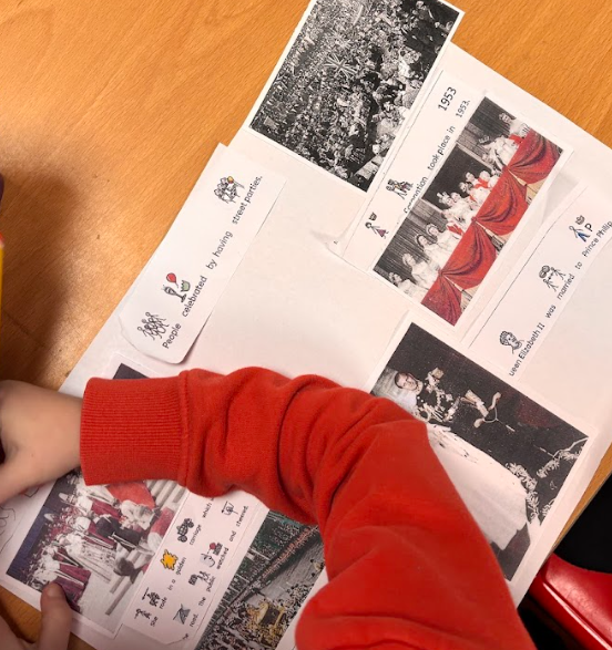 On Wednesday, we had a very immersive lesson to help learn and understand all about Queen Elizabeth II's coronation, which occurred on 2nd June 1953. In class, we learnt the meaning of monarch, coronation and what things occurred during this significant event. We created a collage of facts and pictures that we had just learnt about and shared these with our peers. Afterwards, we went into the hall together to watch the Queen's coronation and celebrated with our mini street party.