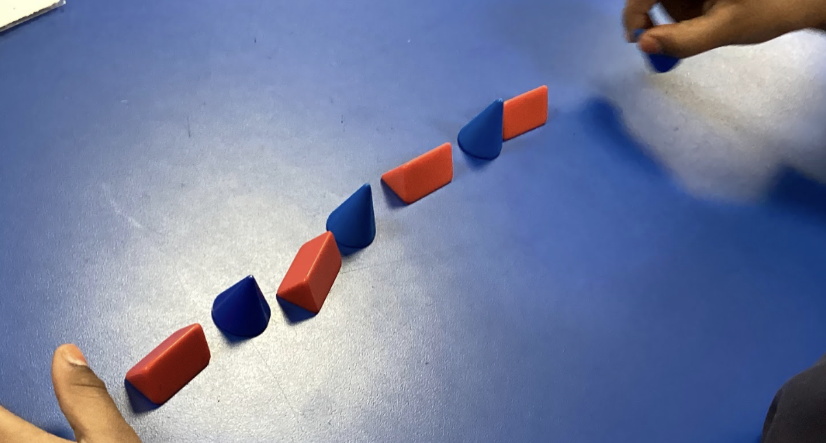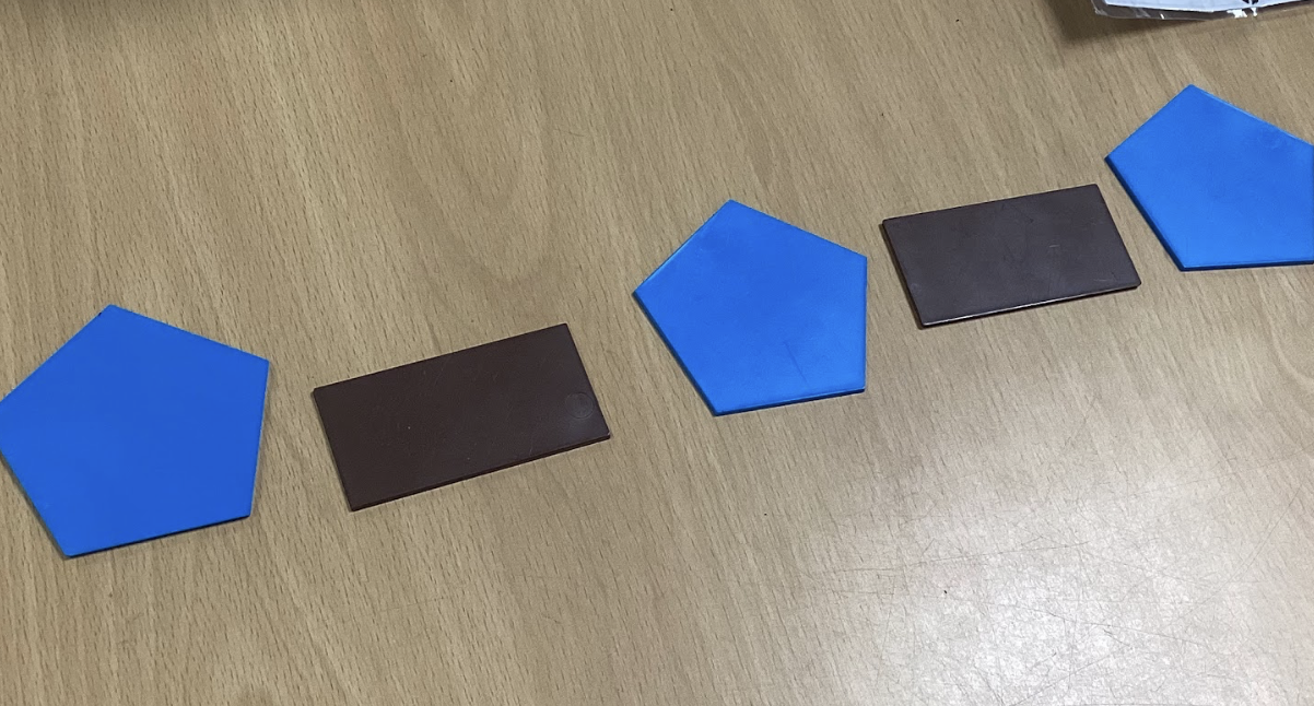 During maths this week, we have been looking at patterns with 2D and 3D shapes. We completed some practical work, making our own patterns with shapes, and even challenged our partners to finish the pattern.