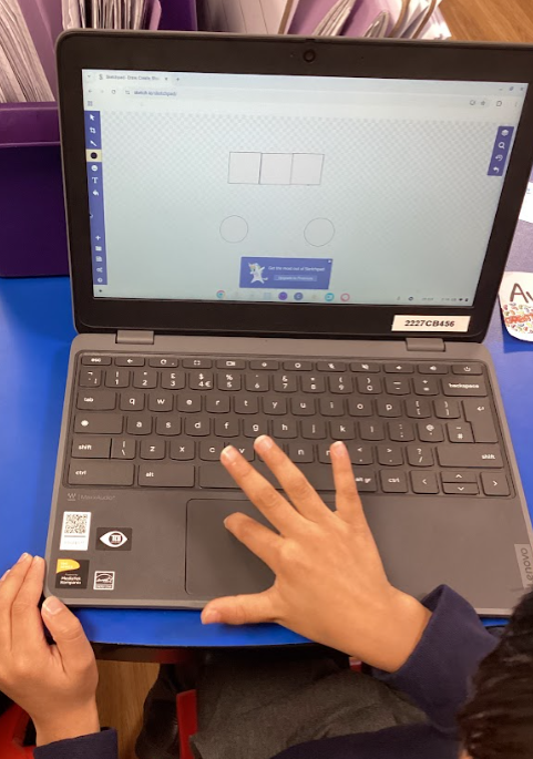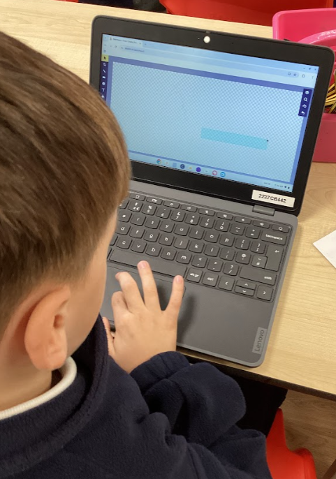 We had our first computing lesson this week! We were shown how to log in and out again using our special cards. Once we were confident in logging in, our teacher introduced us to the tracker pad! We learnt that this was used to control the mouse, and if we press on something, it is 'clicked'. We opened up a sketchpad and had a go at drawing different pictures with our partners using the click and drag skill.