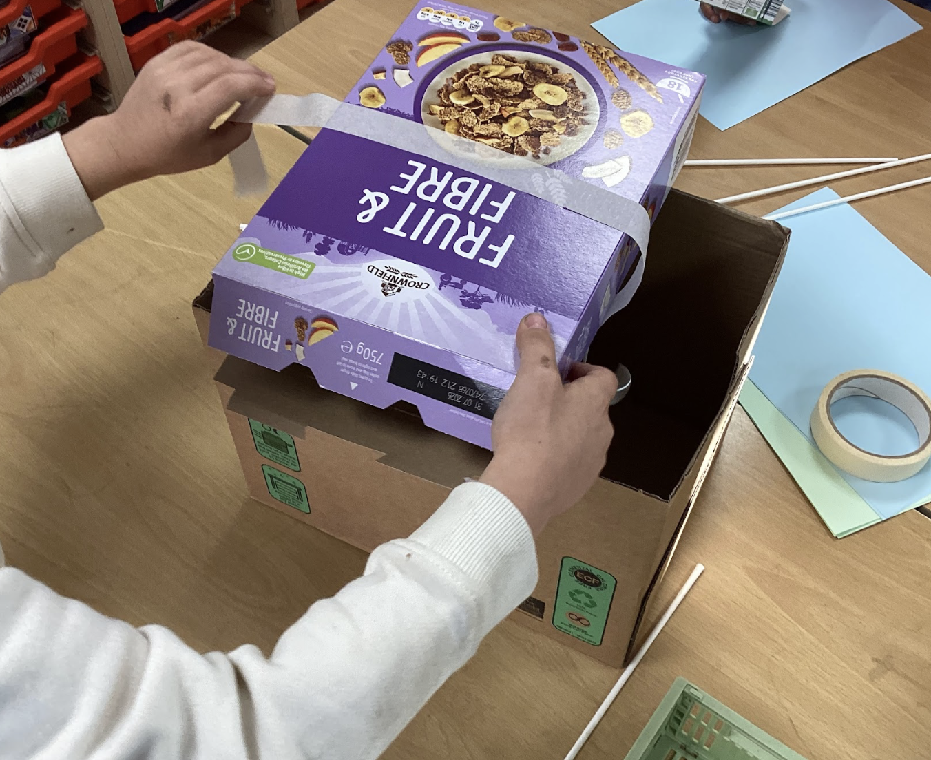 In our DT lesson this week, we were using recyclable materials to make our own mini pet shelters. We had to use our cutting, joining and sticking skills to put different materials and objects together. We worked very hard and were very pleased with our results!