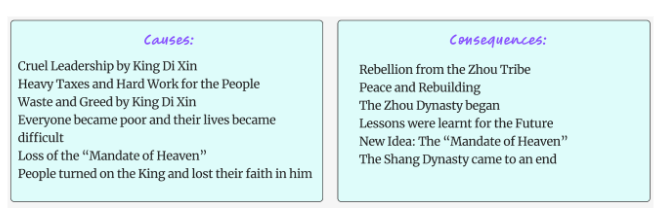 This week, we explored the end of the Shang Dynasty and the causes and consequences of the King's actions. To do this, we acted the end of the Shang Dynasty as a play: