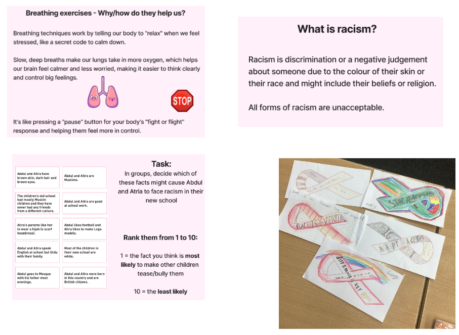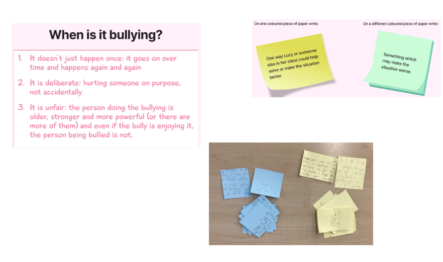 We have explored what bullying and racism actually are, the impact they have on individuals and the importance of speaking up and responding in the correct way. It was very interesting to listen to the children's contributions, stories and their opinions within the lessons.