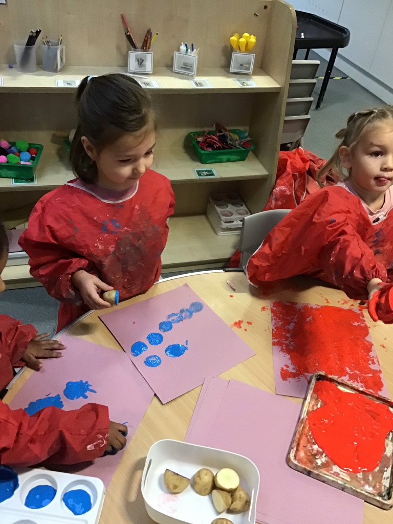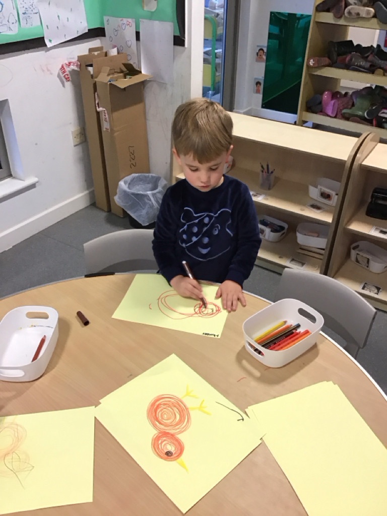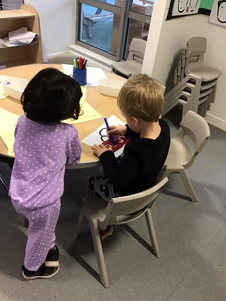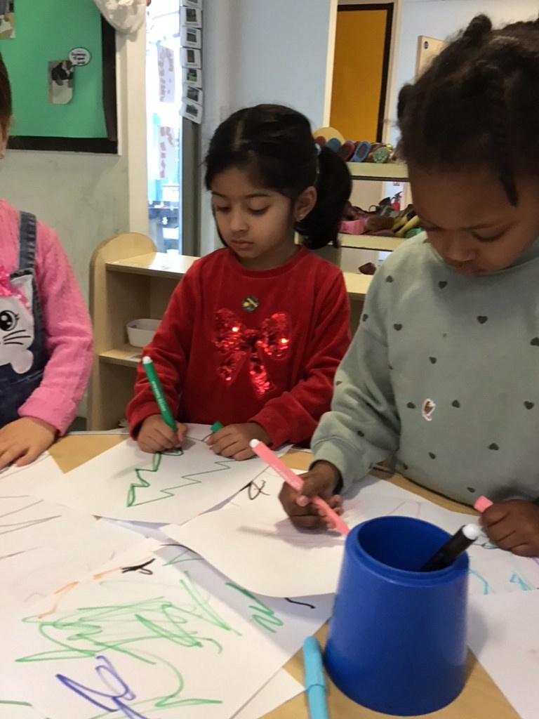 This week the children are being encouraged to use all the skills they have been learning throughout the half term to create drawings and talk about the images they have created. In maths we have been continuing to look at repeating patterns and counting objects to 3.