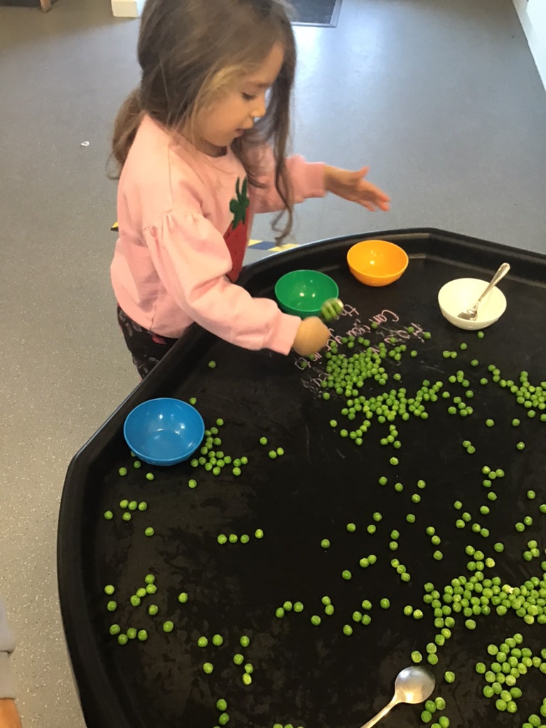 Our focus story this week has been 'Daisy eat your peas'. The children have been talking in their groups about meal times at home and have been role playing in the kitchen together. They were encouraged to cook a meal, lay the table, eat together and then role play washing up their dishes. I wonder who can help with this routine at home?