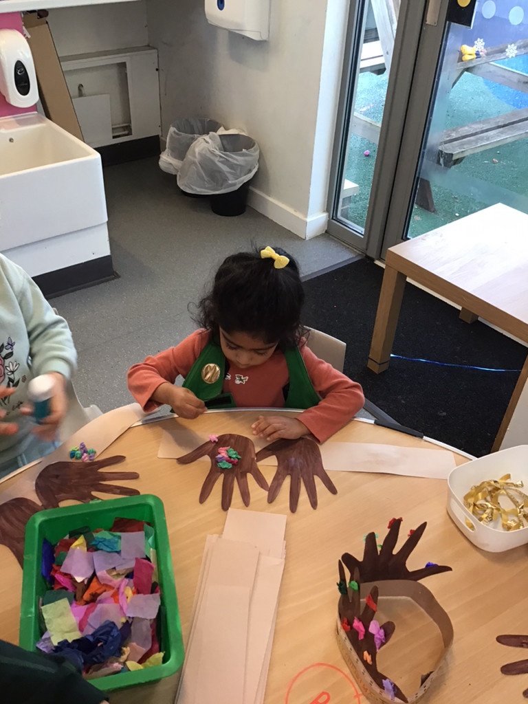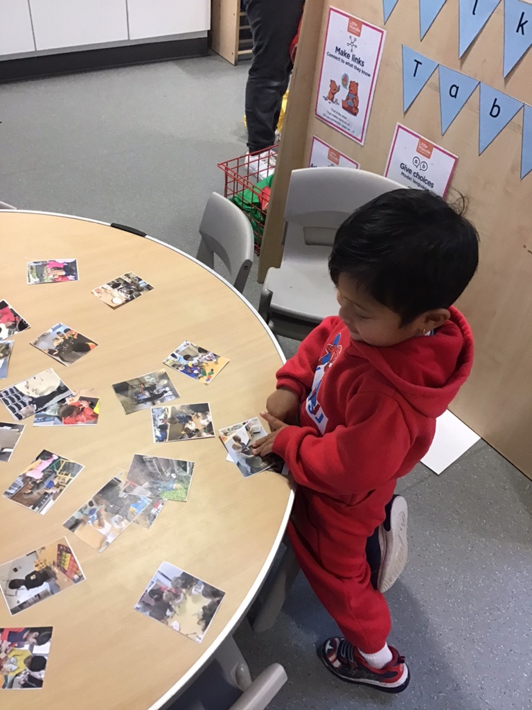 As a celebration of our own we printed lots of photographs of the children from the Nursery year so far for the children to look at and talk about. They were able to talk about what they could see in the picture and had remembered lots of the activities they had completed.
