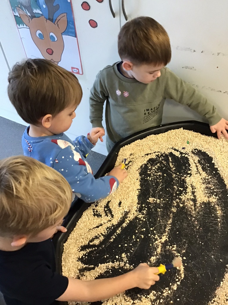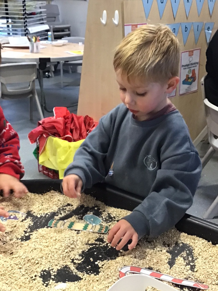 During structured play the children have been exploring lots of different Christmas stories; talking about family traditions and routines they enjoy at Christmas. The staff have also been informed of what each child would like for Christmas.