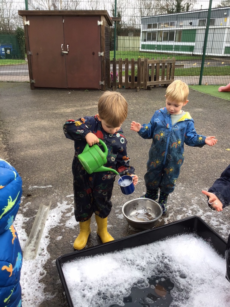 This week in nursery the children have been working in their key groups to create their own versions of 'We're going on a bear hunt'. It has been a busy and bear filled week this week. We have been exploring lots of natural resources within our key groups to make our own picture books based on our story of the week 'We're going on a bear hunt'. We used lots of resources to explore the story using lots of sensory experiences. We retold the story in our own words using the small world tray, created our own thick oozy mud paint and splashed in the water during our outside time.