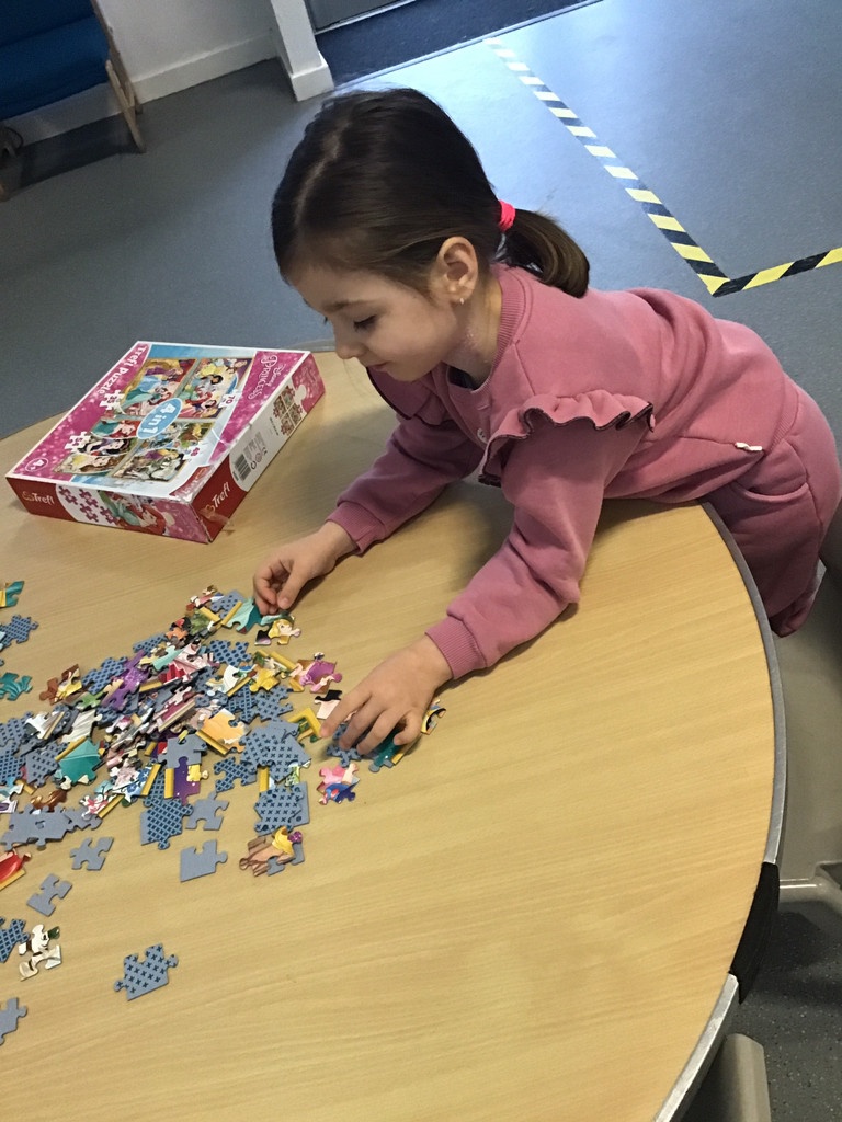In the creative area we have been learning to use different tools such as forks, paint brushes and our hands to create art work. We even had a try at making our own puzzles by cutting bear pictures and placing the pieces back together.