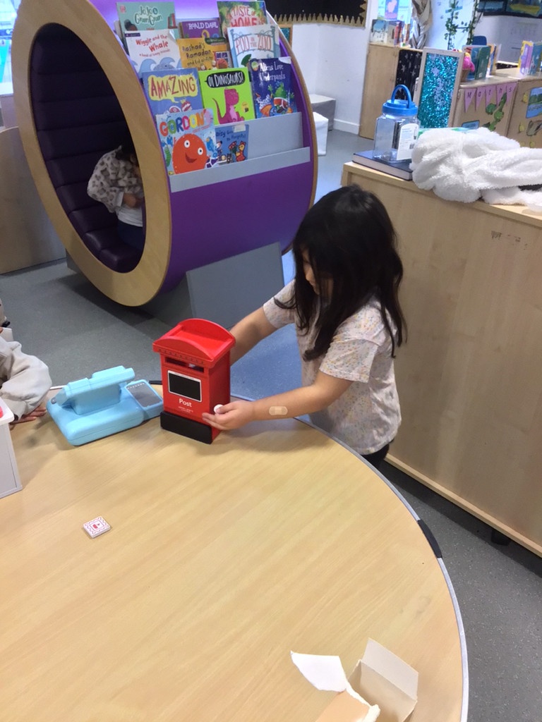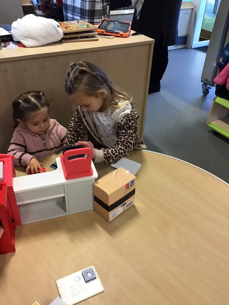 The children have been extending their role play skills this week taking on different roles. At the beginning of the week we had a shop set up for the children to buy food, take it to the kitchen and 'cook'. By the end of the week we had some take away restaurants set up for the children to order food, pay and then take it to the home corner to enjoy.