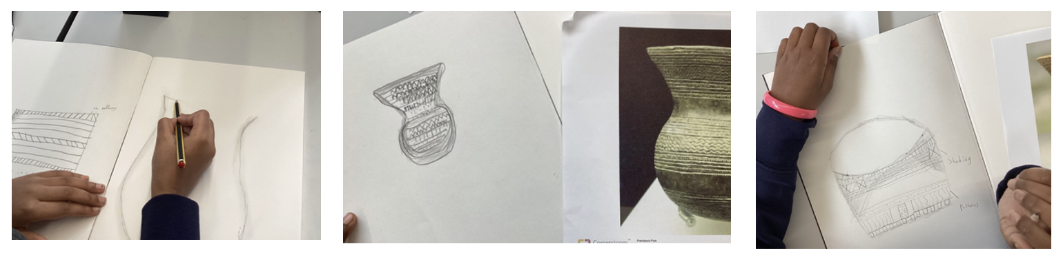 In Art, we began our new topic, Prehistoric Pots, linking beautifully with our history work on the Beaker people. The children explored examples of ancient Beaker pottery, noticing the shapes, patterns and decorations that made each piece unique. They were fascinated to learn how these pots were hand-made and used for everyday tasks thousands of years ago. Using these designs as inspiration, the children then created detailed sketches in their art books, carefully adding texture and pattern to reflect the distinctive Beaker style. There were some very impressive artists at work — and plenty of proud smiles by the end of the lesson!